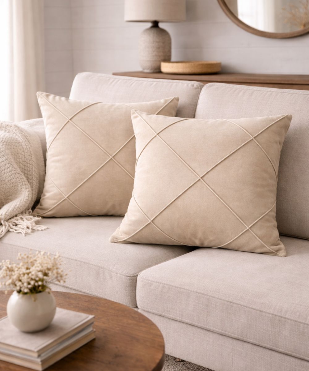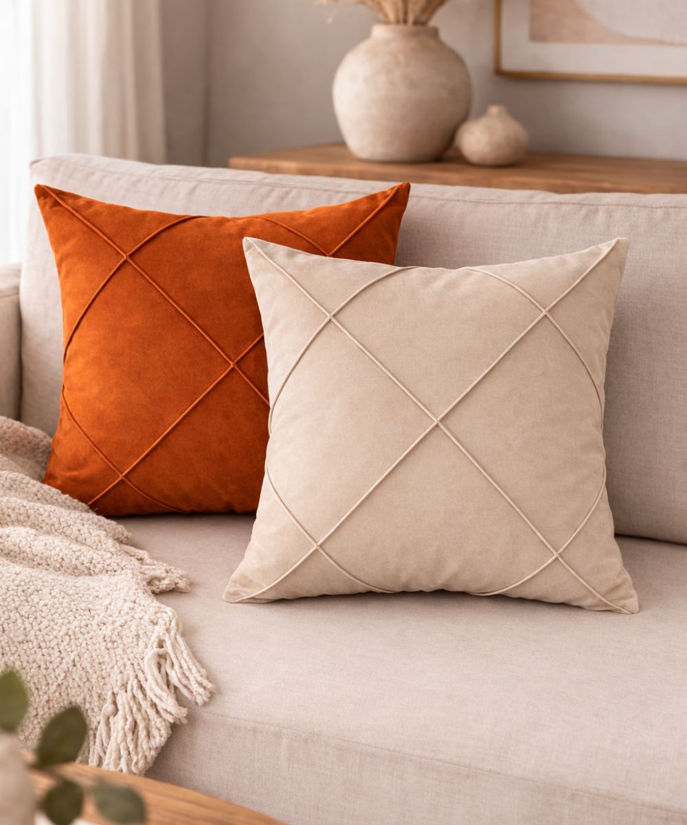 A Almofada Siena une textura aveludada com costura geométrica refinada, criando uma peça de forte presença estética e elegância contemporânea. Seu design estruturado valoriza sofás, poltronas e camas com sofisticação discreta. Disponível em cores modernas e versáteis, é ideal para composições de alto padrão que buscam conforto e identidade visual marcante.